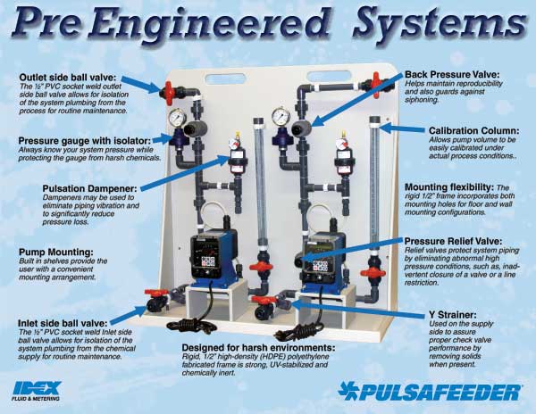 Pulsafeeder Pre-Engineered Systems help you on the "front end" by speeding up installation and start up. Systems are provided completely assembled and tested.