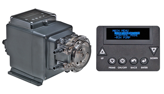 The S Series is a peristaltic metering pump built to NEMA 4X for demanding applications. Select from multiple operational modes and performance indicators that can interface with process control systems utilizing a 4-20mA output signal and three relay outputs. Program the pump for your application with the control panel with OLED display.