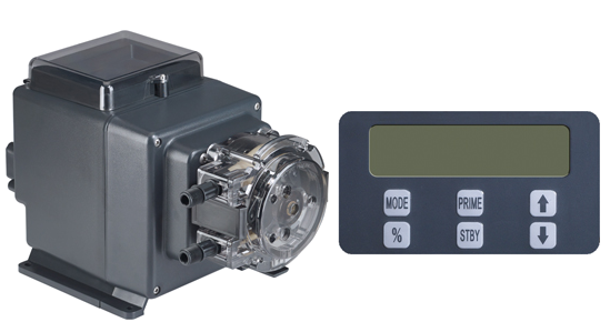 The S10P Series is a peristaltic metering pump activated by a water meter, control valve, flow switch or any control equipment that responds to water flow. The control equipment is wired to the pump input terminals to accept a dry contact or 12-24 VAC/VDC signal. The pump runs at a set time, a set speed or a set flow rate output according to the mode of operation selected.